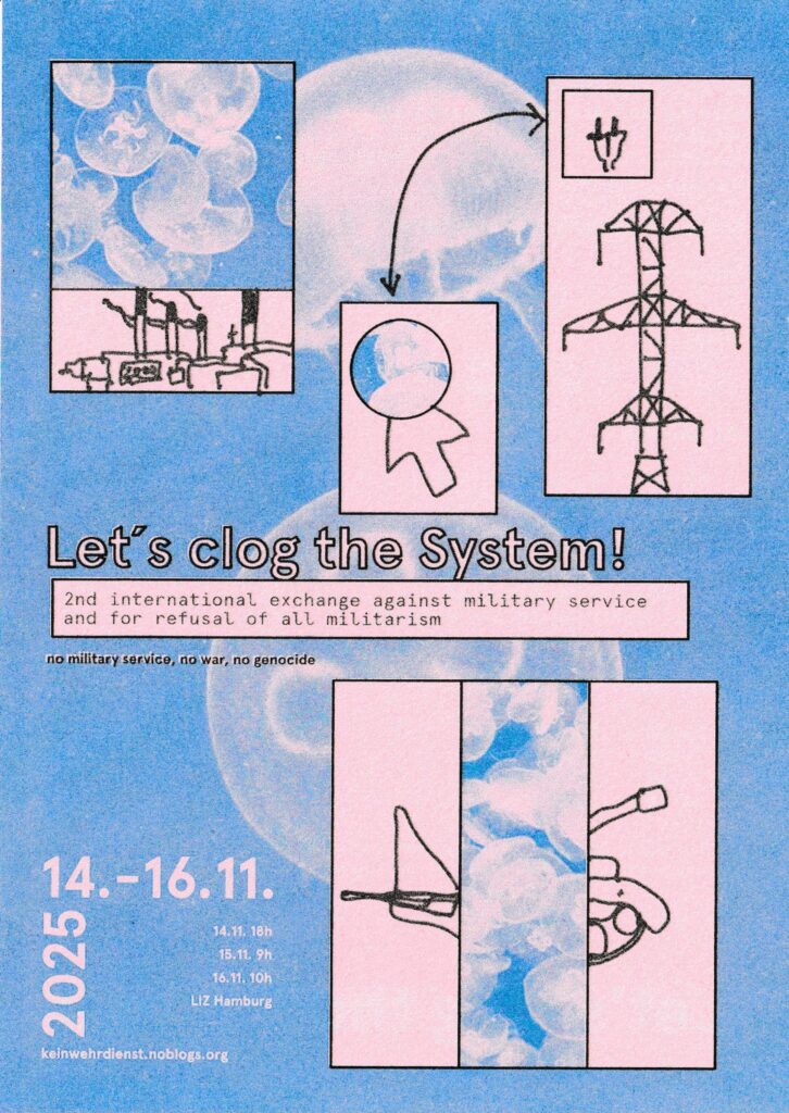 Here is the schedule for the international encounter against military service and for the refusal of all militarism on 15-16 November 2024 in Hamburg. We are looking forward to a constructive internationalist moment: